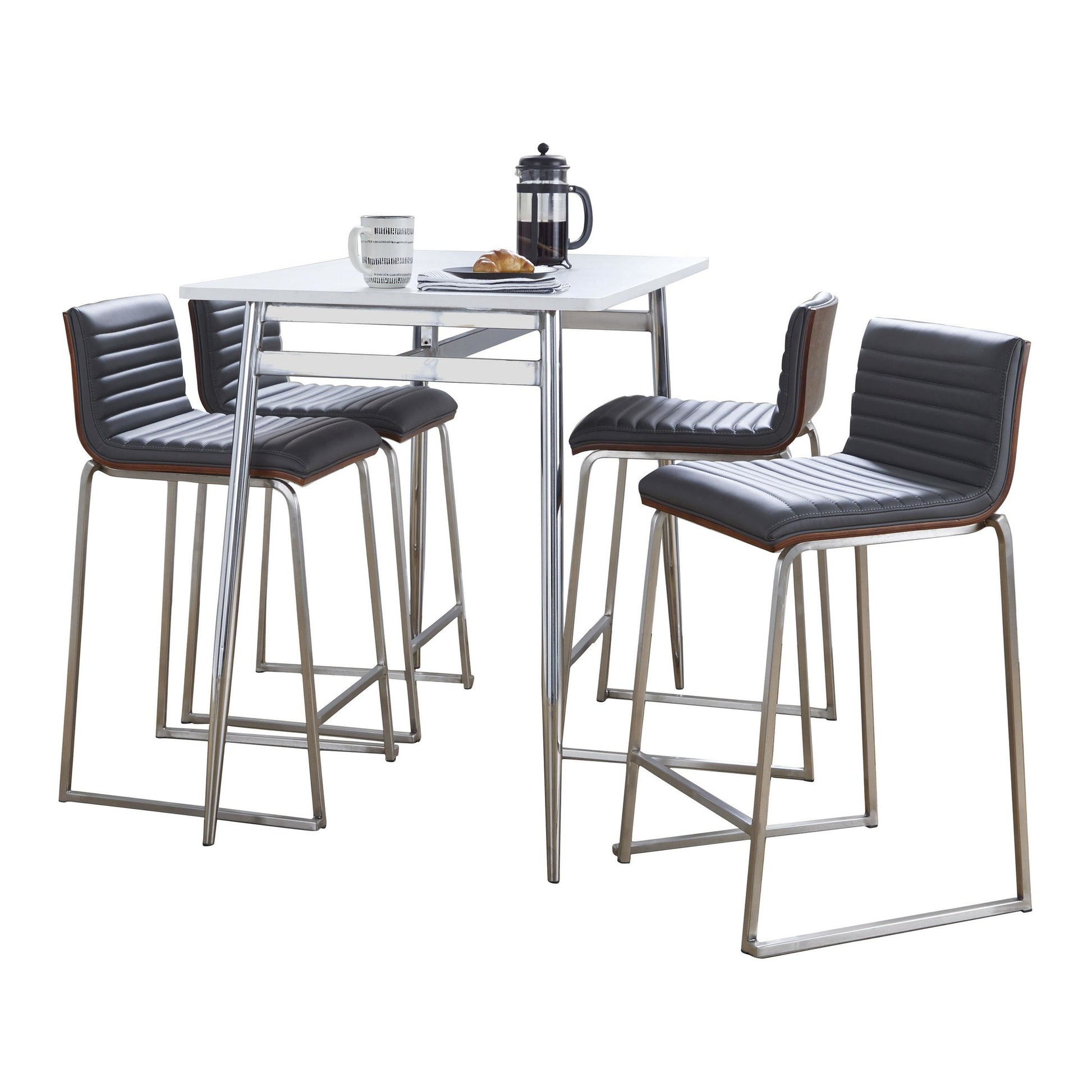 With a simple and sleek counter table, and an accent of comfortable counter stools, the Marcel-Mara Counter Height Dining Set by LumiSource will be a great addition to a modern kitchen or break room. With its metal and wood table top, the Marcel-Mara Dining Set will be a contemporary eye catcher in any setting.
