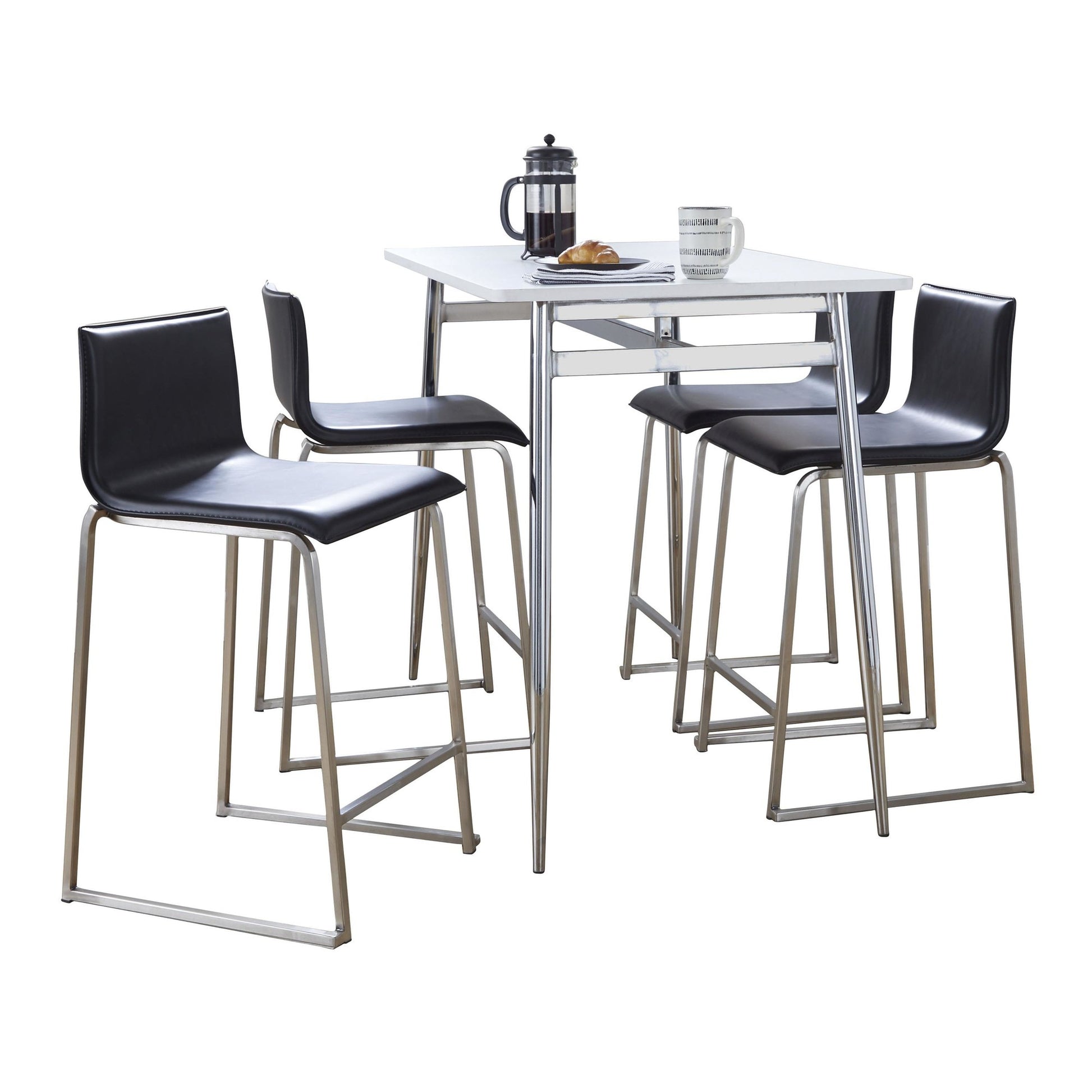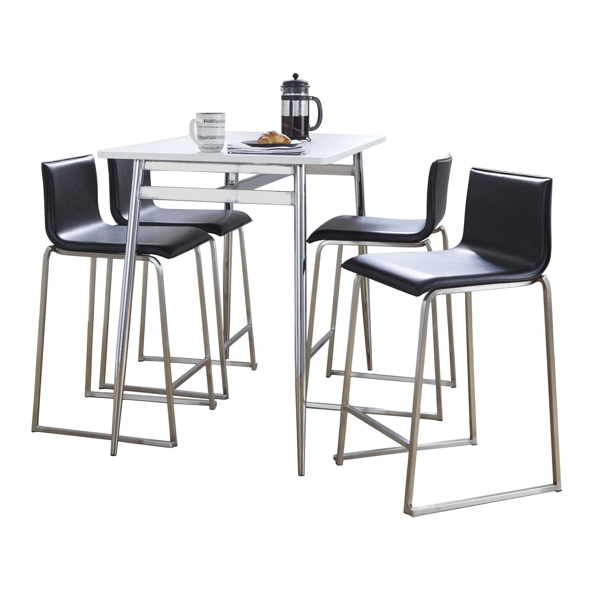 With a simple and sleek counter table, and an accent of comfortable counter stools, the Marcel-Mara Upholstered Counter Height Dining Set by LumiSource will be a great addition to a modern kitchen or break room. With its metal legs and wood table top, the Marcel-Mara Dining Set will be a contemporary eye catcher in any setting.