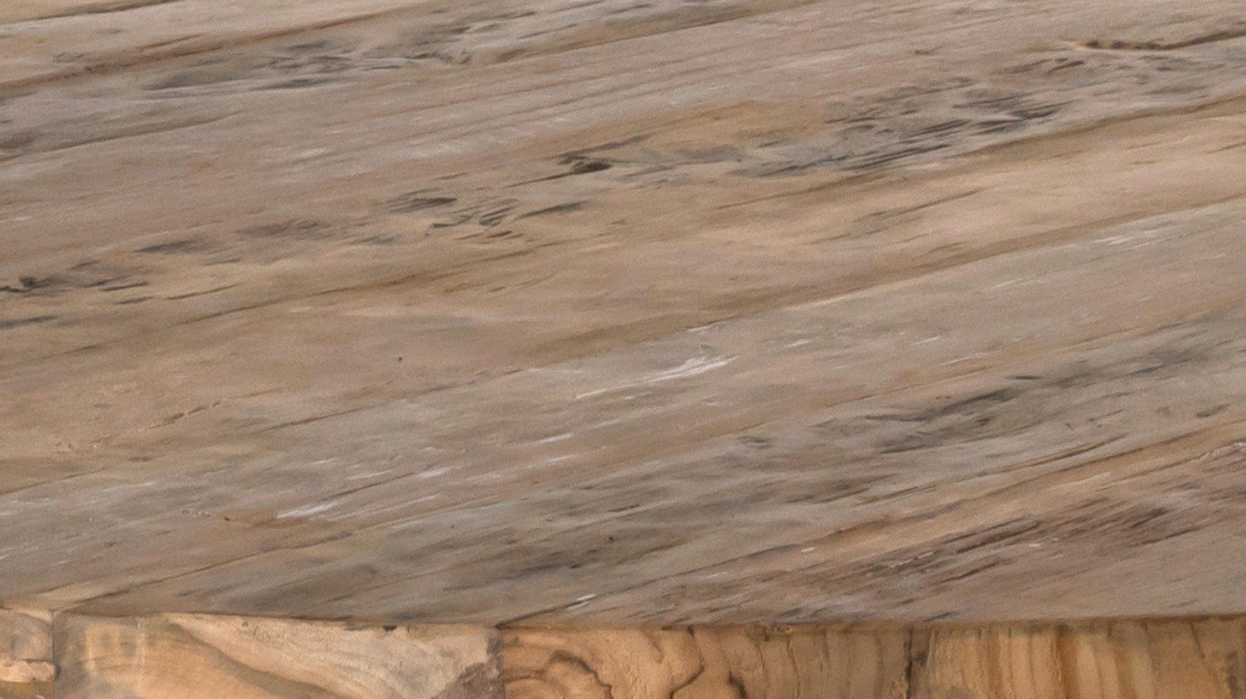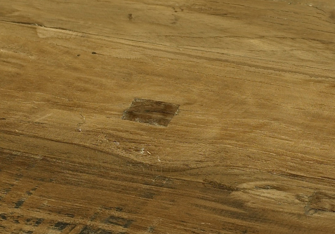 The tabletop, crafted from meticulously sourced reclaimed teak, tells a story of resilience and character. Each plank bears the unique hallmarks of its past life—expect distinctive markings, cracks, crevasses, and fractures that weave a tapestry of imperfection. Subtle nicks, nail marks, and rich color variations ranging from weathered grays to deep, honeyed browns highlight the wood’s journey through time. Having endured the elements and weathered countless storms, this rough-hewn teak stands as a testament to nature’s enduring strength and durability, offering a surface that’s as functional as it is visually captivating.