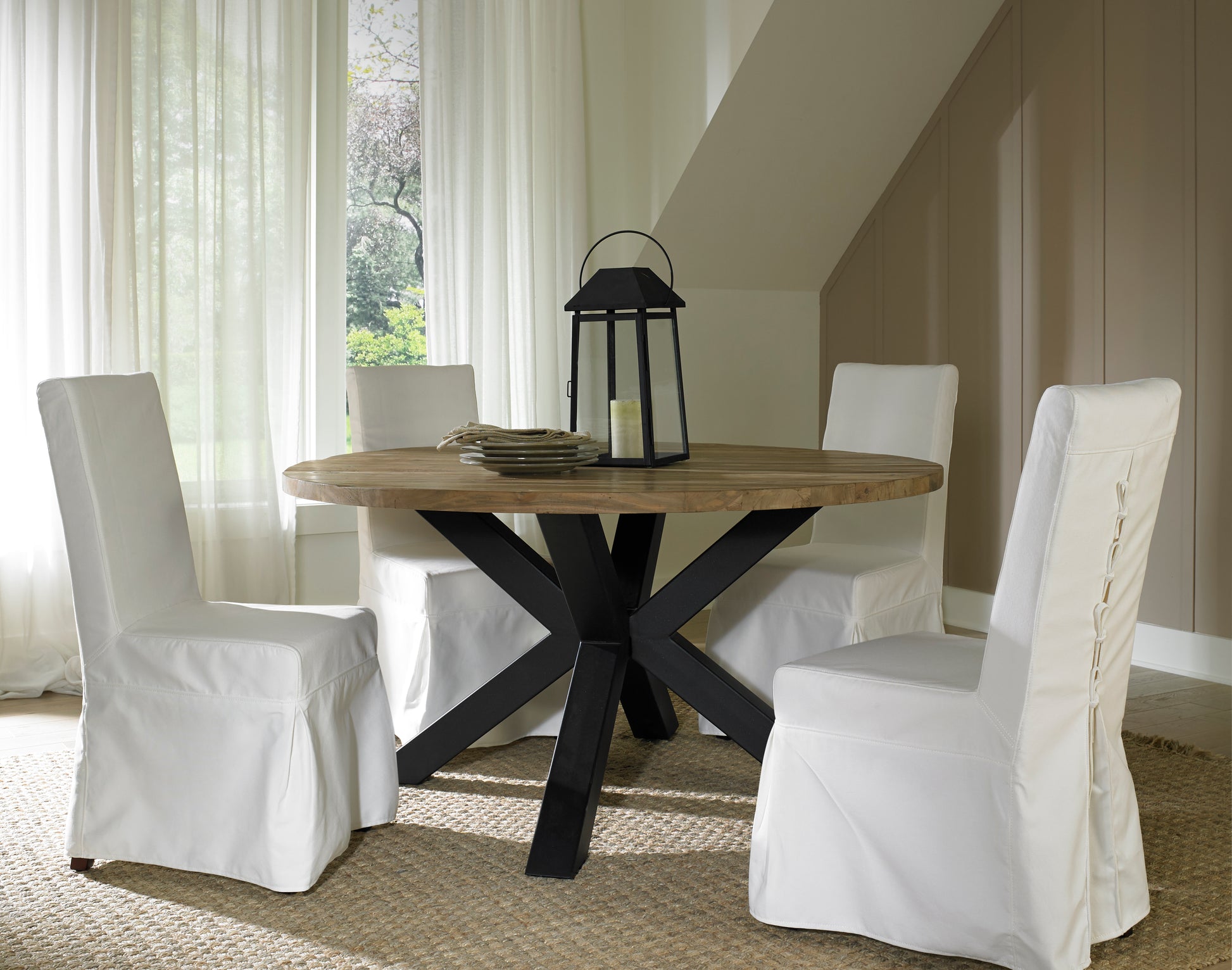 The table’s industrial-inspired base, constructed with clean lines and a sleek metal finish, provides a striking contrast to the organic warmth of the teak top, creating a harmonious blend of rustic and contemporary aesthetics. Available in 48” or 60” diameters, the Giulia Dining Table comfortably seats up to 4-5 guests, making it ideal for intimate gatherings or lively dinner parties. Its versatile design effortlessly complements a range of interior styles, from modern lofts to cozy coastal retreats.